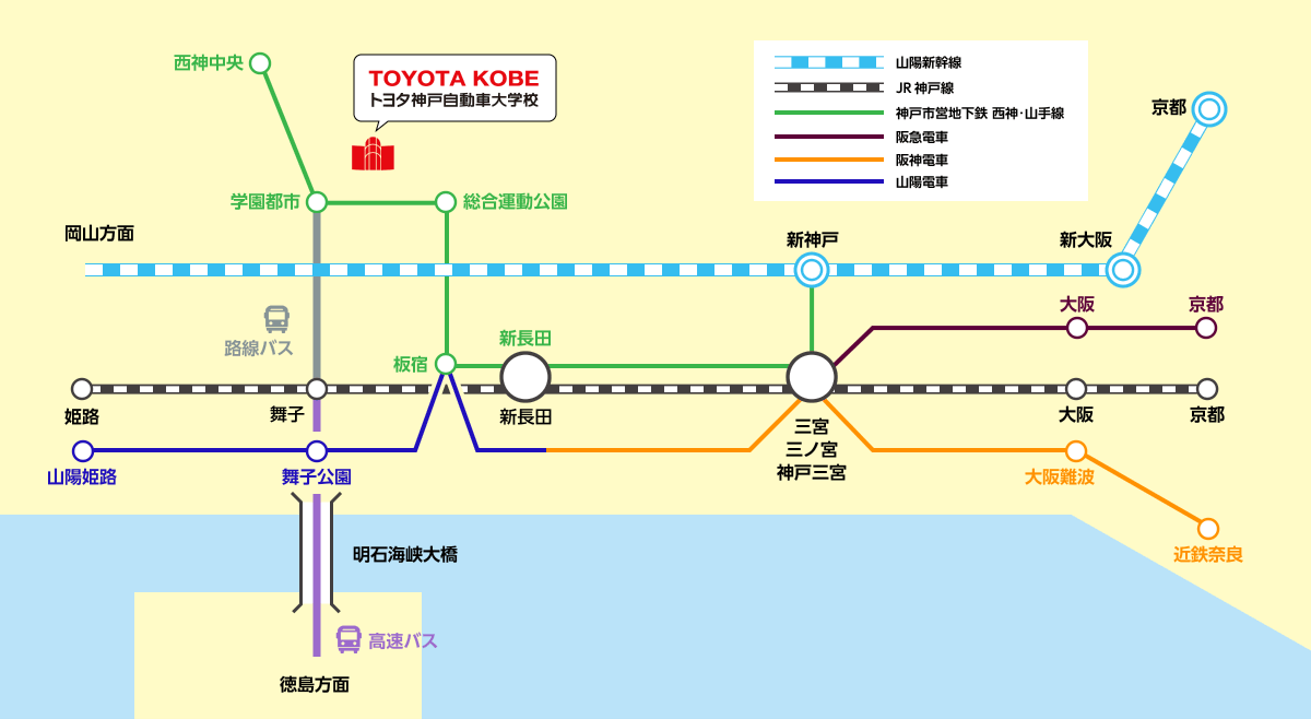 トヨタ神戸自動車大学校は神戸市の西部、神戸研究学園都市に位置しています。
