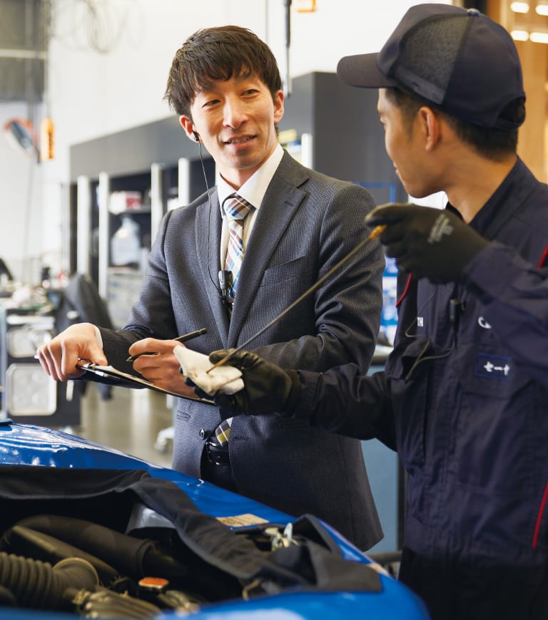 トヨタ系列(ダイハツ、日野自動車を含む)の販売店で、サービスエンジニアとして点検や修理などを行います。