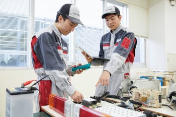 BEV・PHEV・FCEVなど電気モーター駆動による車両の構造や制御について学習します。また、電動車特有の点検・整備作業、不具合診断の解析を通じて理解を深めていきます。