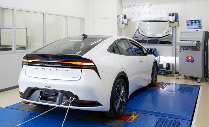 ローラ上で実際に車両を走行させ、駆動力や燃費などの車両データの変化を確認することができる設備。走行性能実習室と新技術実習棟の2か所に設置。2基揃えている専門学校はおそらくトヨタ神戸自動車大学校だけ。