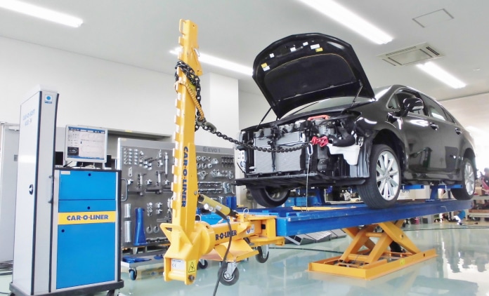 事故で損傷した車両の構造の診断と修理を行うための機器。コンピュータ計測により正確に損傷状態を確認し、効率的な修正作業ができる高性能なフレーム修正機です。