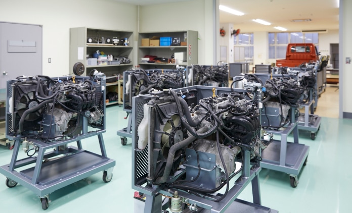エンジン単体で始動可能な状態にした大型教材。エンジンの分解組付けから故障診断まで幅広い授業で使用します。ガソリンエンジンやディーゼルエンジンなどさまざまな種類のものが140基以上あるので思う存分触って理解を深めることができます。