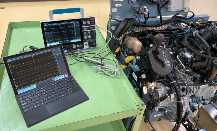 目に見えない電気信号を波形として画面に表示し観測可能にする装置。自動車の電子制御の故障診断などで活用します。