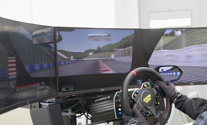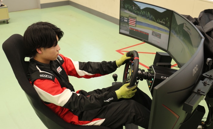リアルな挙動とモータースポーツ走行が体験できるレーシングシミュレータ。車両セッティングが走行性能に及ぼす影響を体感したり、サーキット走行前のイメージトレーニングとして活用。