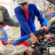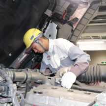 - お客様の車が安全に運行できるように、また故障時には、いち早く使用を再開していただけるように修理や整備(定期点検・車検)を行います。